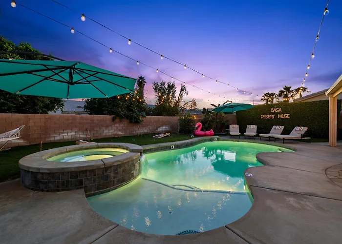 This Indio property is equipped with coffee and tea makers, a refrigerator, and kitchenware for self-catering in a dining area. Guests can dine at Neil's Lounge, which is a 13-minute walk away. Palm Springs International airport is 35 km away from the 2-bathroom villa. After a day of exploring Indio and its attractions, you can take a refreshing swim in a private pool or enjoy a private garden at Casa Desert Muse With Heated Pool Spa Firepit Mini Golf And Games.